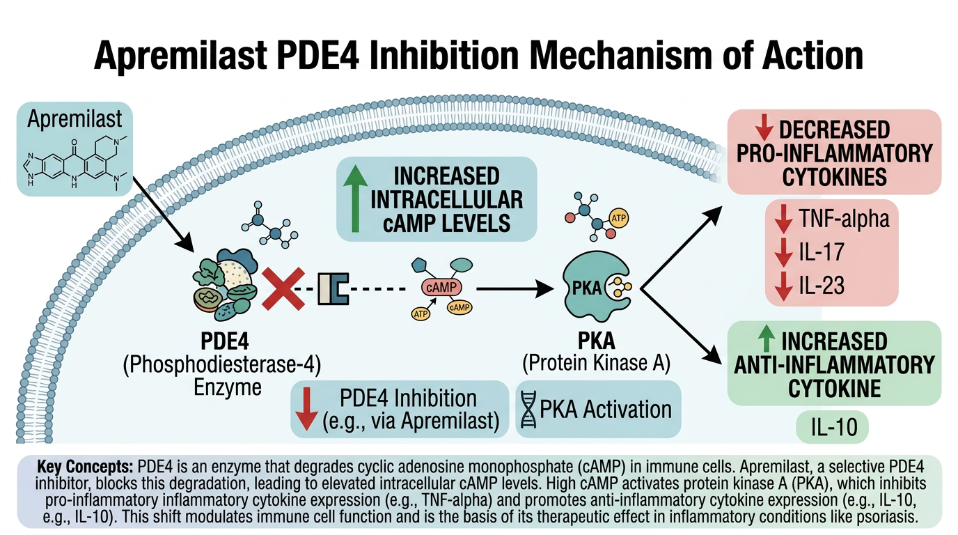 Apremilast는 중등도-중증 판상 건선(moderate-to-severe plaque psoriasis) 환자에서 전신 치료제 또는 광선치료의 대상이 되는 경우에 사용됩니다.