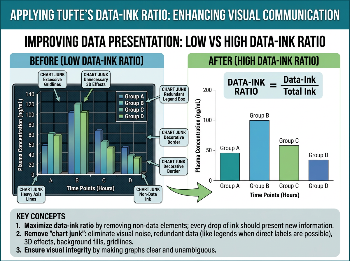 이 비율은 가능한 한 1에 가까워야 합니다. 즉, 그래프의 모든 요소는 데이터를 전달하는 데 기여해야 하며, 장식적 요소(chartjunk)는 최소화해야 합니다.